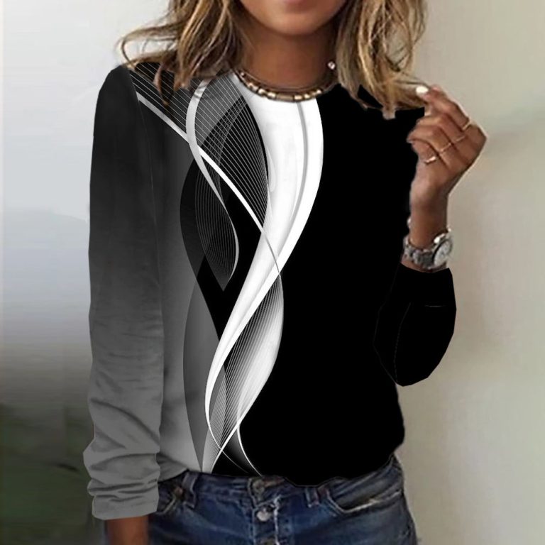 Abstract Black Gray White Long Sleeve Top