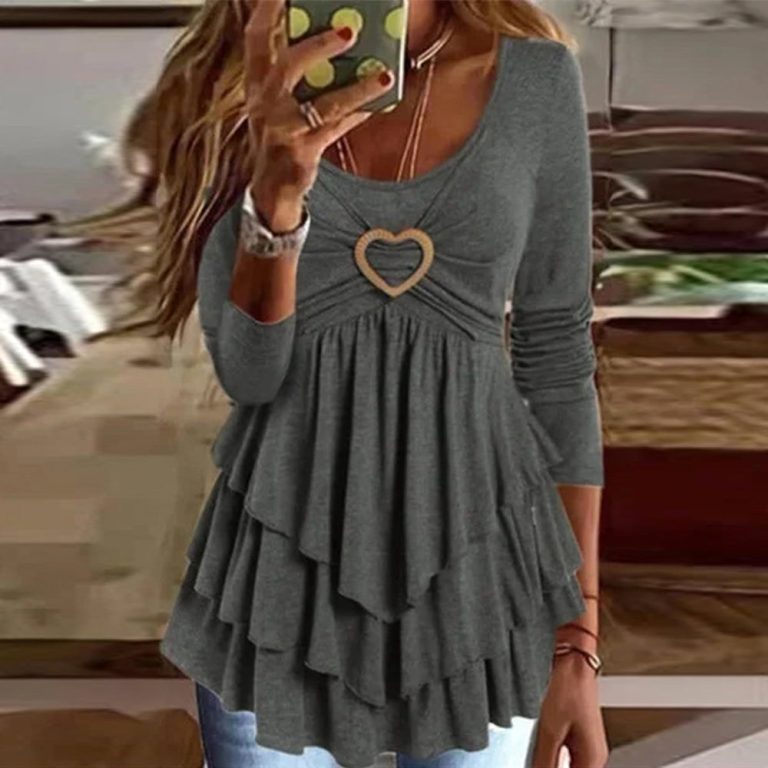 Red Holiday Snowflake Asymmetrical Long Sleeve Top