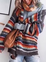 Grey Long Sleeve Striped Outerwear