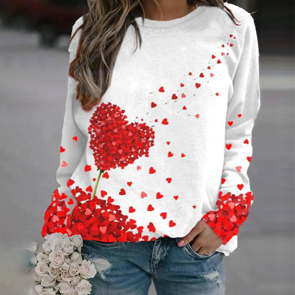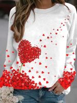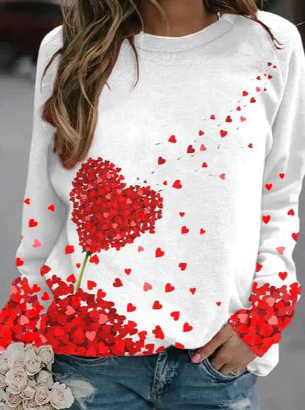 This sweet sweatshirt top features bright cherry-red hearts blowing in the wind from a heart-filled flower stem, giving it pure romance with an artistic twist. The long sleeves and crewneck collar make this shirt ideal for any casual look. Pair it with jeans or leggings with boots.