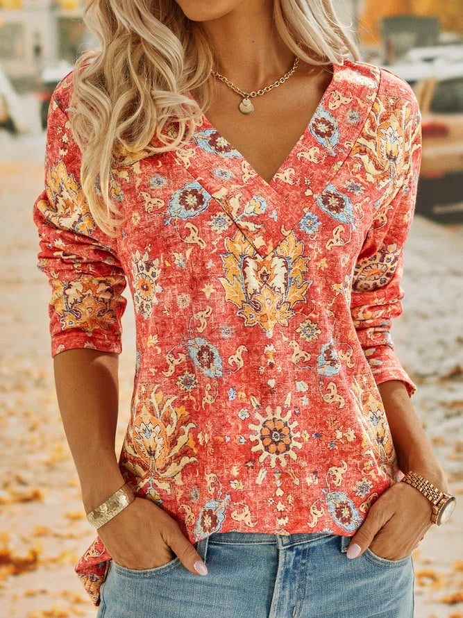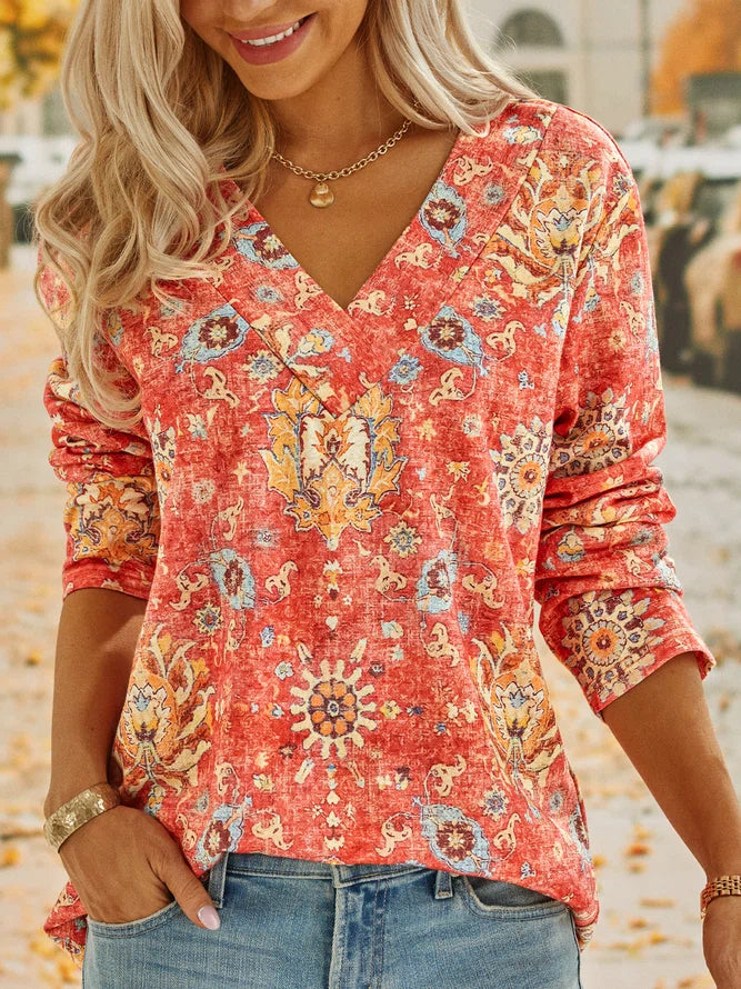 Be the first to review “Boho Summer Flower Red V-Neck Top”
