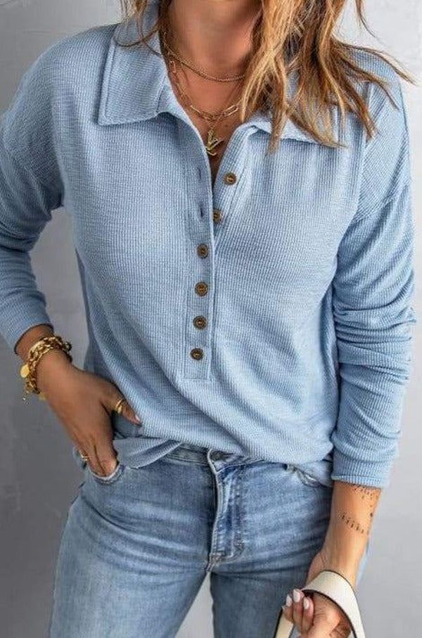 Blue Fold-Over Collar Thermal Henley Top